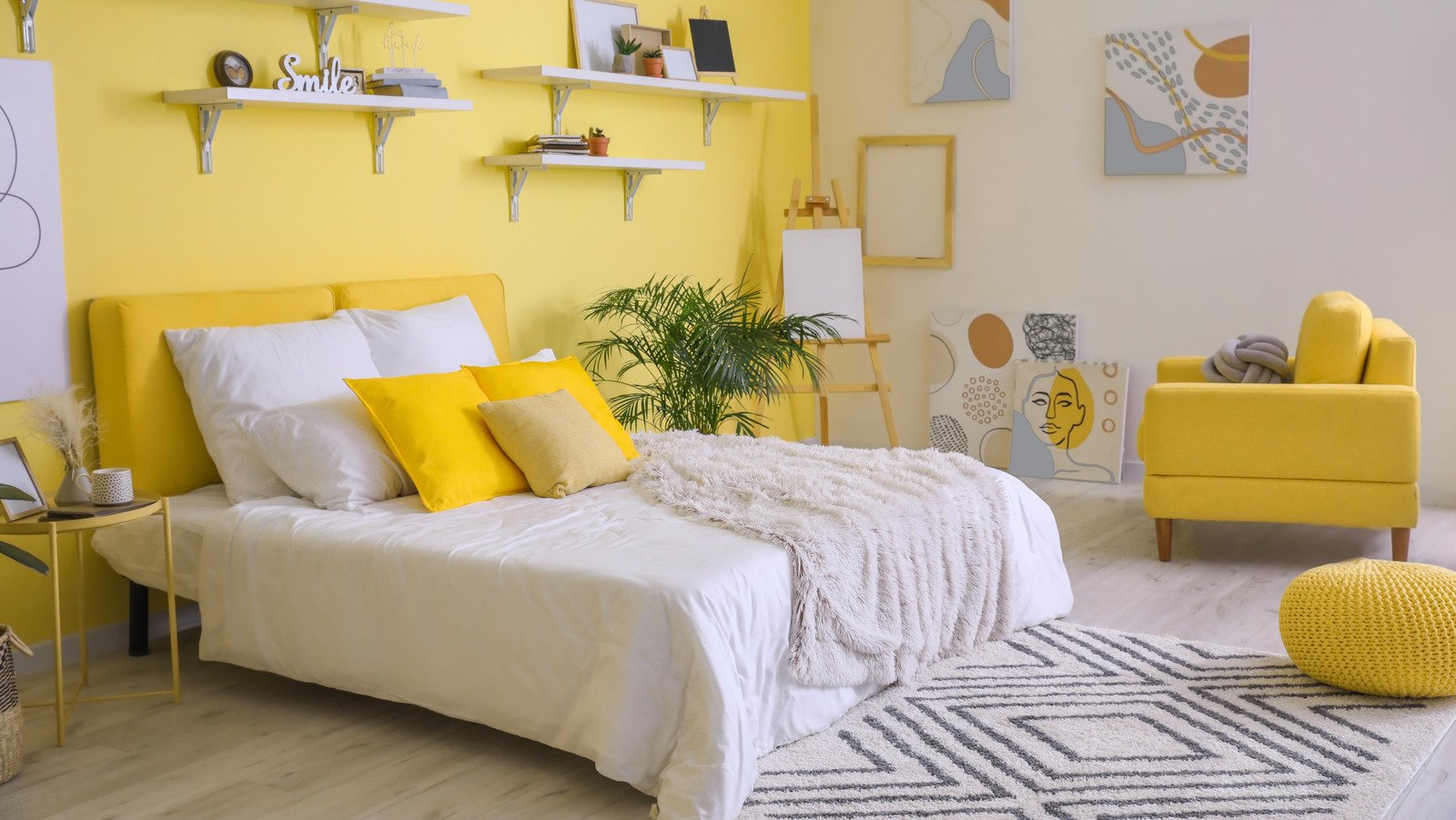 Yellow is often associated with happiness and positivity, but it can also be quite stimulating. Bright yellow in your bedroom may make it challenging to relax and fall asleep. Instead, opt for softer shades of yellow, such as pastels or muted tones, to create a more serene atmosphere.